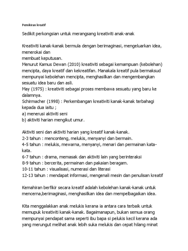 Pra 3106 Perkembangan Kreativiti Kanak Kanak